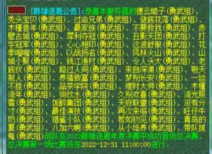 在梦幻西游中有很多的PK玩法是跟各位玩家的角色等级有关系的,不同等级的玩家划分为不同的组别,在不同的组别中进行PK。其中的勇武组是89级的组别。上面的这些就是勇武组在群雄逐鹿玩法中的前64强的队伍。不过这些队伍所在的服务器是蓬莱岛,上面的这些队伍的总是要达到了40多个,前64强总共就64支队伍,其中40个是蓬莱岛的。从这里就能够体现得出蓬莱岛服务器在勇武组的这个级别的统治力。