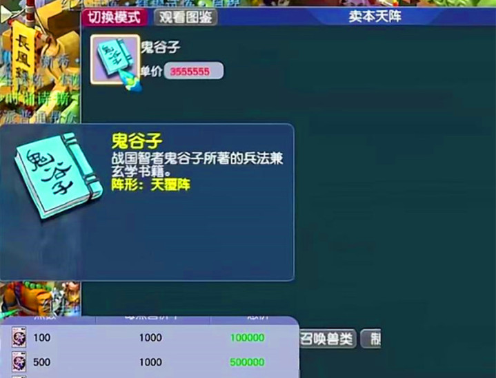 上面是新区的玩家出售的一本天覆阵,可以看到该服务器的点卡的价格特别便宜。每一点点卡差不多也就是1000两左右的梦幻币,但是这本天覆阵却摆了355万的梦幻币,换算下来差不多是350块钱了,这就是梦幻中有很多玩家那么热衷于冲新区的原因。在新区前期是押镖是特别赚钱的,随便出一本阵法书都能够逆袭。在某些特别火的服务器第1本天阵能够买到上千块。