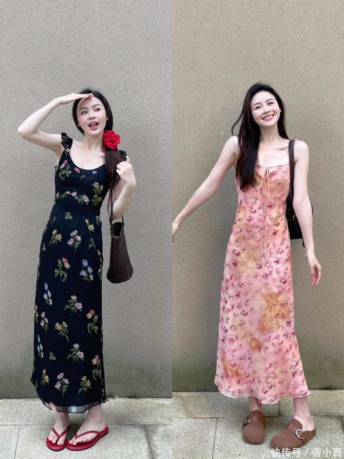 想要搭配的更省时省力,可以安排上印花连衣裙,它凭借独特的图案和浪漫气质,是打造小姨风穿搭的关键单品。